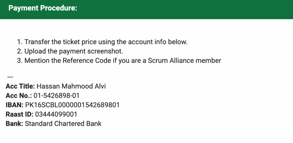 10% discount available for Scrum Alliance or Pakistan Agile Education members.